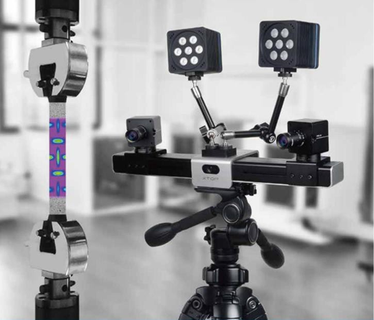 全场应变测量系统能够在各种复杂的测试环境下,分析材料的力学性能和行为表现,并且可以完美地生成到现有试验台和试验机。可以在机械加载和热加载的情况下,测量软质和硬质材料的全场三维应变和变形。